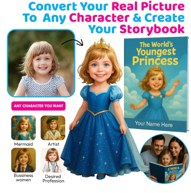 Make your child the star of their very own adventure with this personalized storybook for kids! Using your child’s photo and name, I’ll create a unique story where they can become anything they dream of — a superhero, doctor, princess, artist, or more.